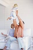 Parents playing with daughter