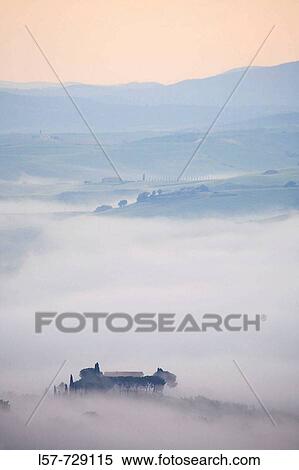 agriculture, cloud, color image, country, country-house, cupressus, cupressus sempervirens, cypress, europe, farm, farmhouse, field, fog, fogy, group, hill, house, idylic, italian cypress, italy, landscape, mist, misty, sempervirens, spring, stone, top, tree, tuscany, stock image, images, royalty free photo, stock photos, stock photograph, stock photographs, picture, pictures, graphic, graphics, fine art prints, print, poster, posters, mural, wall murals, l57-729115, l57 729115, l57729115