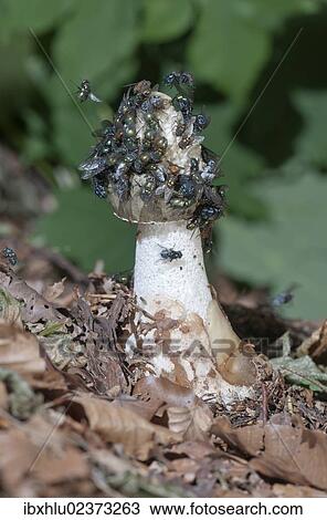 animal, autumn, autumnal, brachycera, close-up, common stinkhorn, daytime, deutschland, europe, forest floor, fungus, german, germany, lure, many animals, nature, nobody, one object, organism, outdoors, phallus impudicus, short-horned fly, smell, stink, stock image, images, royalty free photo, stock photos, stock photograph, stock photographs, picture, pictures, graphic, graphics, fine art prints, print, poster, posters, mural, wall murals, ibxhlu02373263