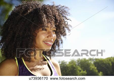 20 to 24 years, adult, alone, brunette, close, close-up, color, copy space, curl, curly, curly hair, dark hair, day, detail, developed land, ethnic, facial expression, female, front, front view, good mood, ground, hair, hair color, hairstyle, happiness, head and shoulders, headshot, image lighting, land, leisure, light, mid-length hair, mix, mixed, mixed race, mixed race ethnicity, multi ethnic, multi-ethnic, one person, one young adult woman, only adults, only one adult, only one woman, only women, only young adults, only young women, outdoors, park, pleasure, ringlet, season, single, sleeveless, smiling, summer, sun, sunlight, tank top, top, top garment, tops, vest, view, view point, woman, young, young adult, young woman, stock image, images, royalty free photo, stock photos, stock photograph, stock photographs, picture, pictures, graphic, graphics, fine art prints, print, poster, posters, mural, wall murals, u73936170