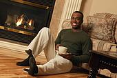 african, american, black, coffee, comfortable, contemporary, eye, eye-glasses, eye-wear, eyeglasses, eyewear, fireplace, front, glasses, happy, horizontal, hot, large, latte, male, man, mug, relaxing, sitting, wear, young, stock image, images, royalty free photo, stock photos, stock photograph, stock photographs, picture, pictures, graphic, graphics, fine art prints, print, poster, posters, mural, wall murals, u13218481